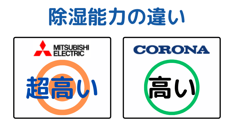 三菱とコロナ除湿機の違いは以下のとおりです。