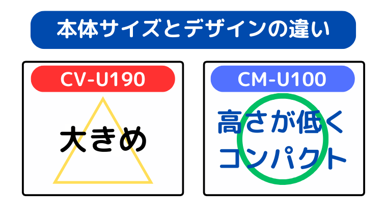 | 商品画像 機種名 | ![]() 2026年モデル CV-U190 引用元:楽天市場 | ![]() 2026年モデル CM-U100 引用元:楽天市場 | 商品の違い |